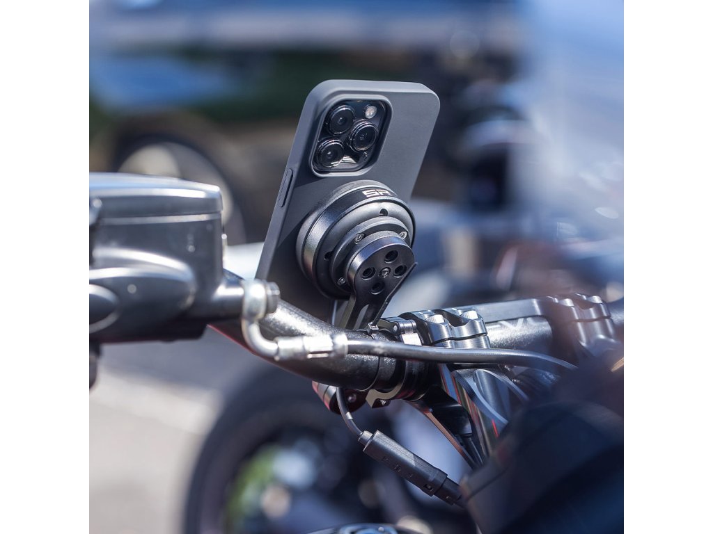 Instalace je jednoduchá: stačí vyměnit kompatibilní montážní hlavu za Charging Anti Vibration Module a telefon připevnit pomocí systému Mag-Align přímo na antivibrační modul pootočením o 90° ve směru hodinových ručiček. Modul je otočný o 360°, takže si snadno nastavíš ideální orientaci displeje.