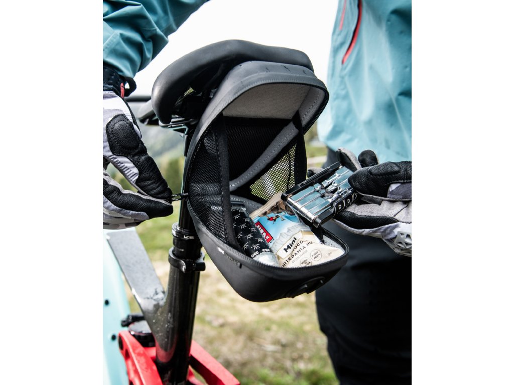 Brašnu snadno připevníte pod sedlo díky přiloženému nástavci. Saddle Case je také vybavena integrovaným SPC+ systémem, který vám umožní připnout SP LED světlo přímo na brašnu. Pomocí patentovaného mechanismu twist to lock Saddle Case jednoduše vyjmete nebo znovu upevníte do držáku.