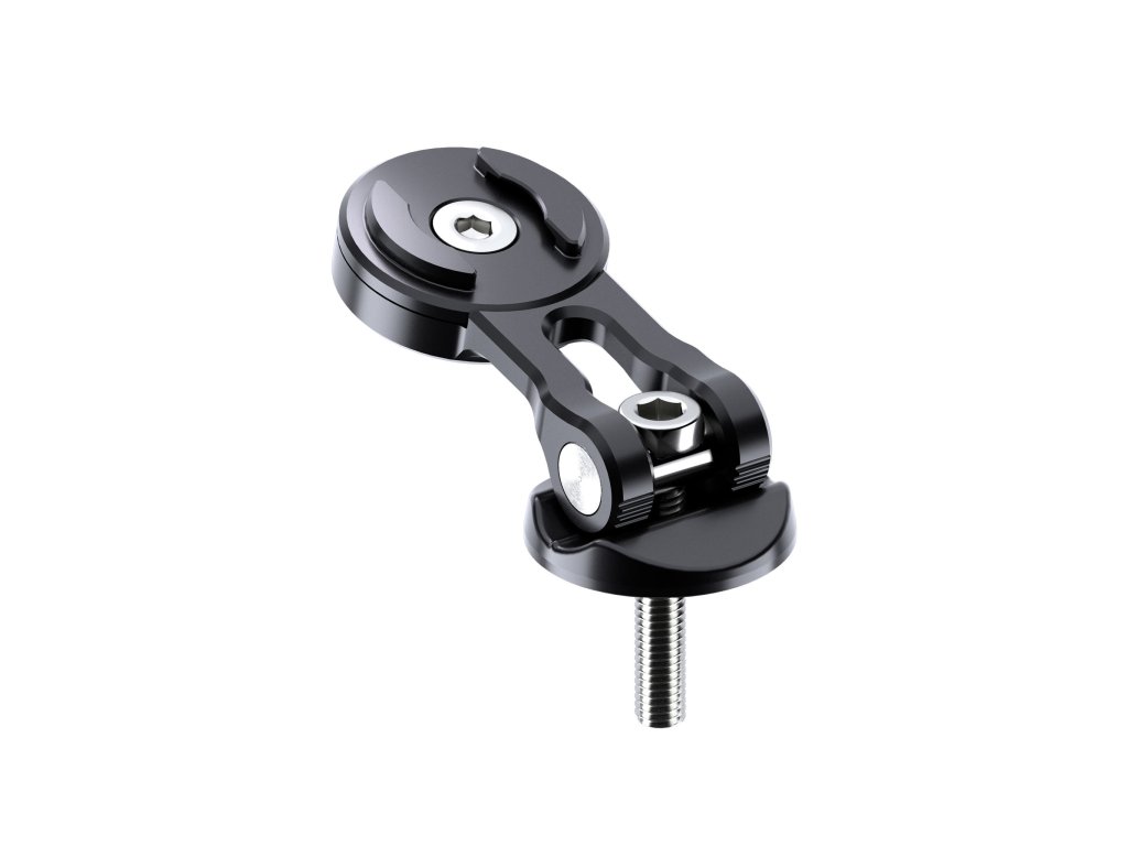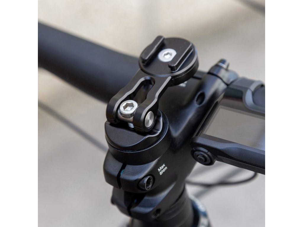 Rozbalený STEM MOUNT PRO je odolný držák z kvalitního hliníku. Snadno ho namontujete na místo čepičky na představci řídítek.