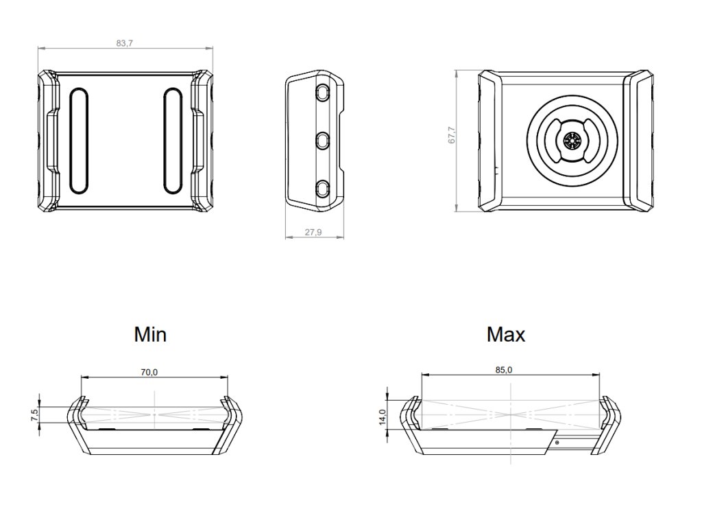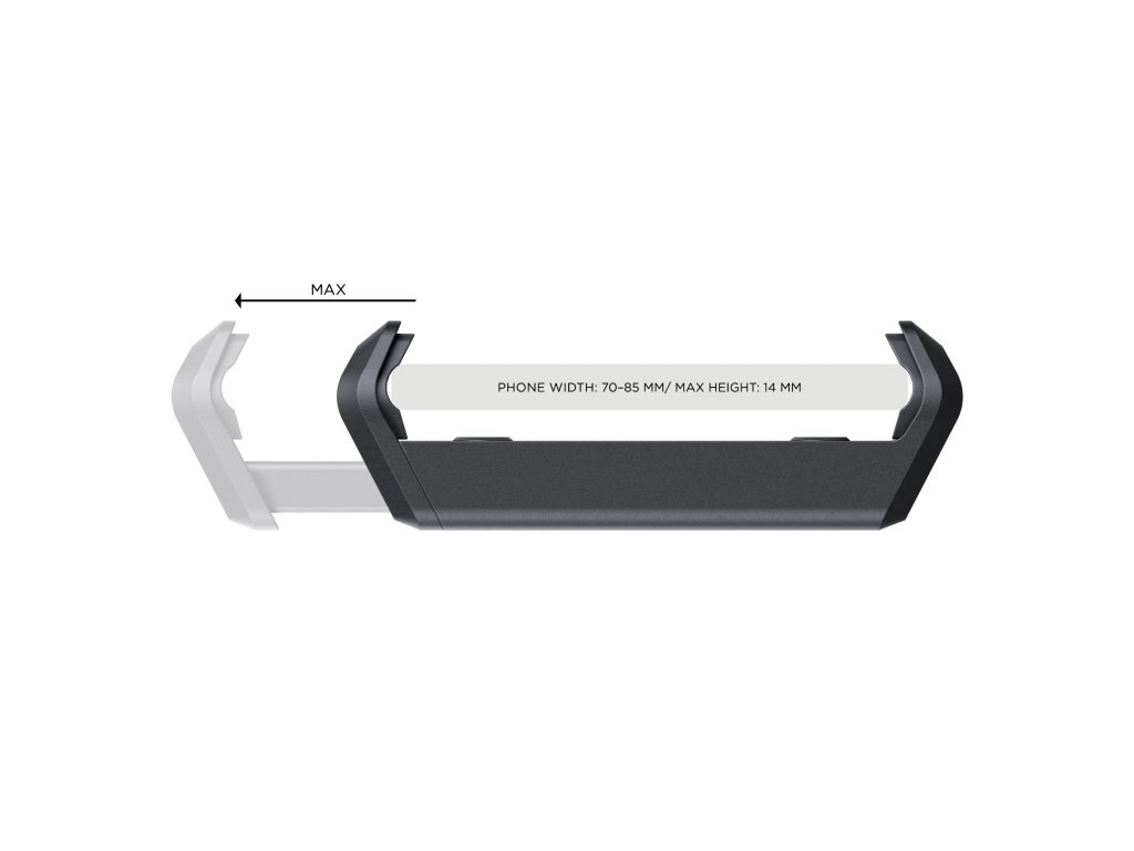 Univerzální držák telefonu je praktickým řešením pro rychlé a bezpečné uchycení vašeho smartphonu. Je vyroben z odolného polyamidu vyztuženého skelnými vlákny a je navržen tak, aby pasoval na telefony s pouzdrem i bez něj. Podporuje zařízení o maximální šířce 85 mm a maximální tloušťce 14 mm.