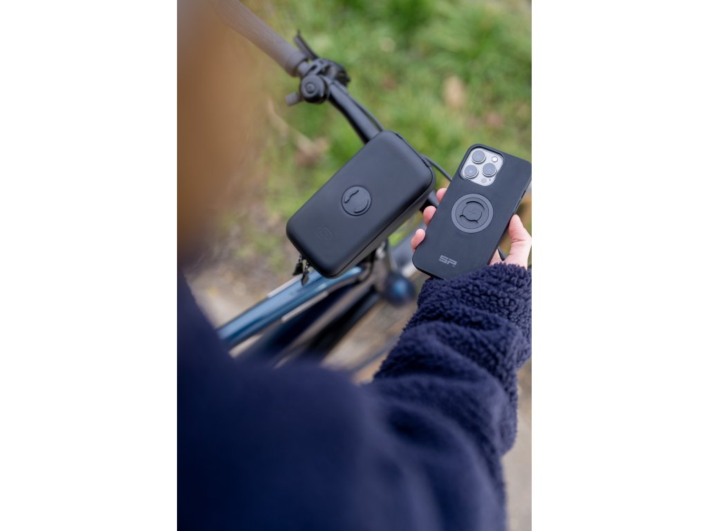 Brašna má dvojitý zip a na vrchní straně upínací destičku s SPC+ systémem na níž můžete připevnit SPC+ kryt nebo univerzál a vpředu lze namontovat nové SP LED světlo,. V balení jsou 2 držáky na upevnění brašny: objímka na řídítka a držák do představce.